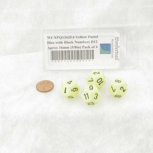 WCXPQ1262E4 Yellow Pastel Dice with Black Numbers D12 Aprox 16mm (5/8in) Pack of 4