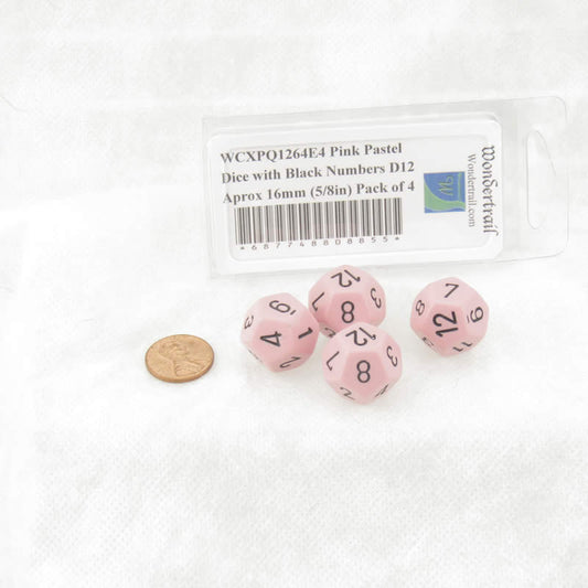 WCXPQ1264E4 Pink Pastel Dice with Black Numbers D12 Aprox 16mm (5/8in) Pack of 4