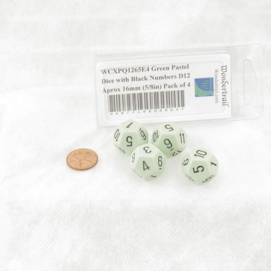 WCXPQ1265E4 Green Pastel Dice with Black Numbers D12 Aprox 16mm (5/8in) Pack of 4