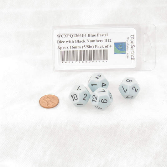 WCXPQ1266E4 Blue Pastel Dice with Black Numbers D12 Aprox 16mm (5/8in) Pack of 4
