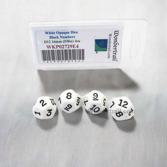 WKP02729E4 White Opaque Dice Black Numbers D12 16mm Pack of 4