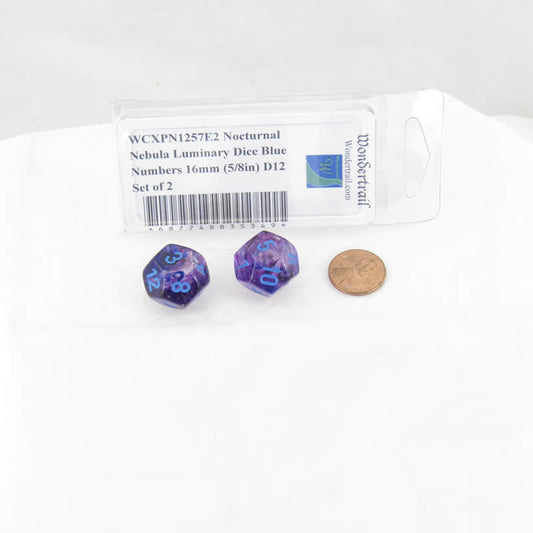 WCXPN1257E2 Nocturnal Nebula Luminary Dice Blue Numbers 16mm (5/8in) D12 Set of 2
