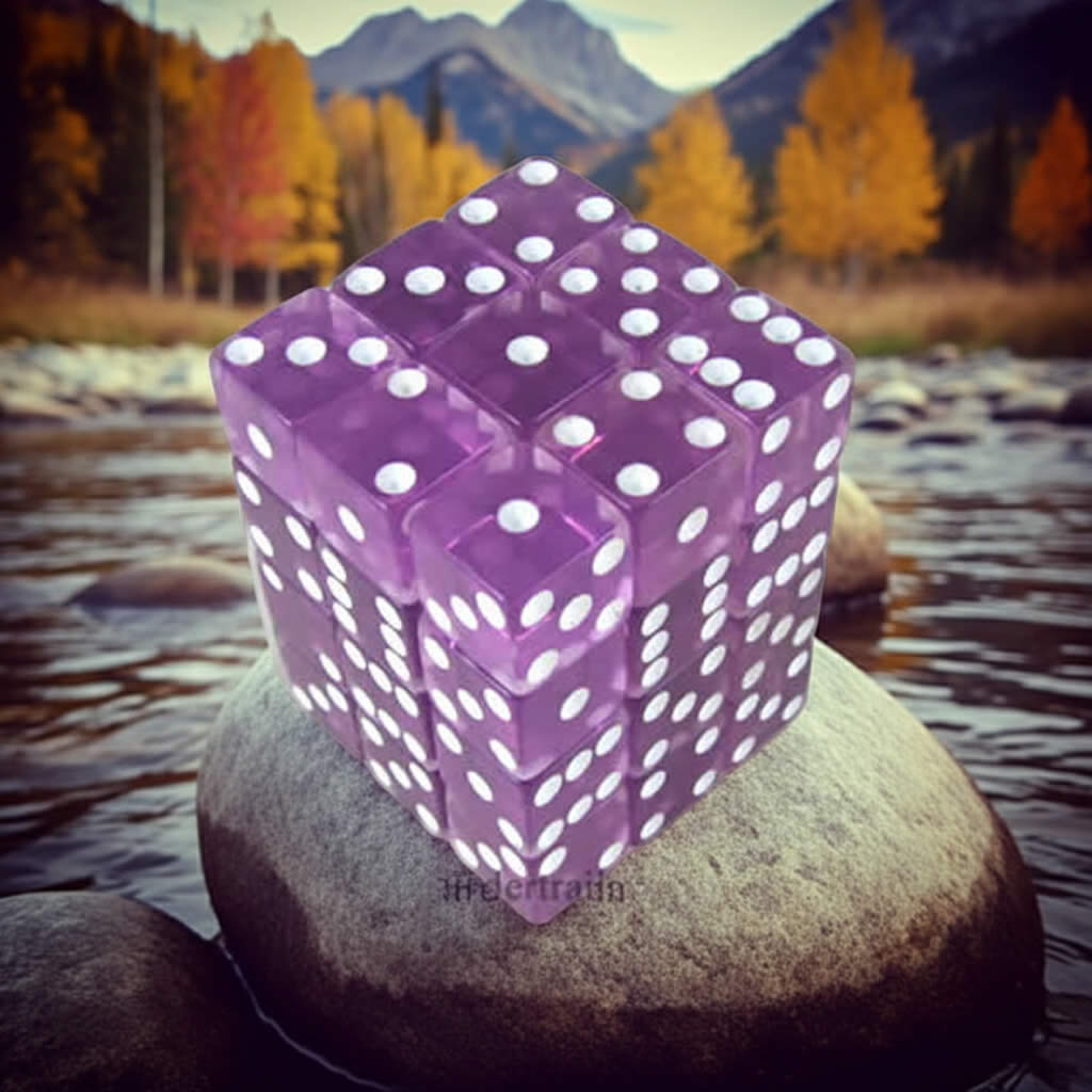 KOP01854 Orchid Transparent Squared Corner Dice with White Pips D6 12mm (1/2in) Pack of 36 Dice Koplow Games