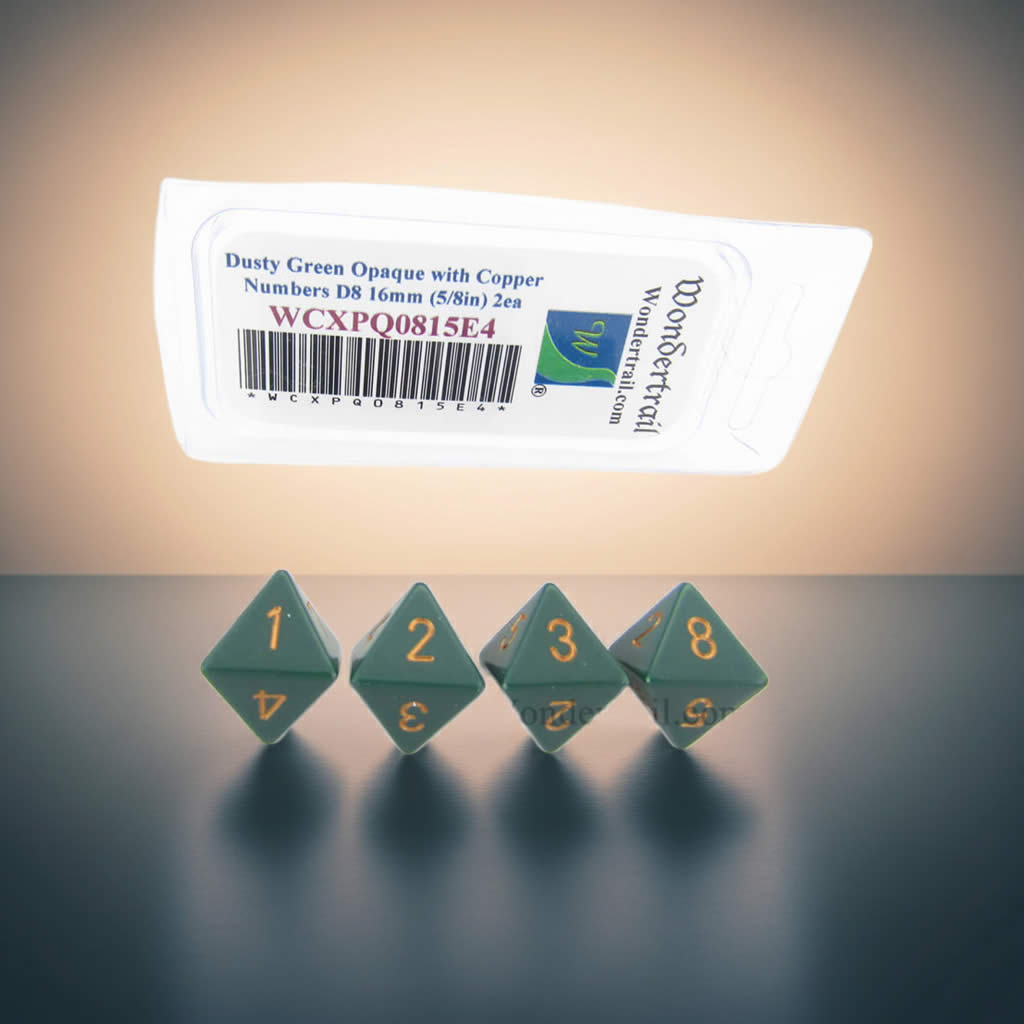 WCXPQ0815E4 Dusty Green Opaque Dice with Copper Numbers D8 Aprox 16mm (5/8in) Pack of 4 Dice Wondertrail