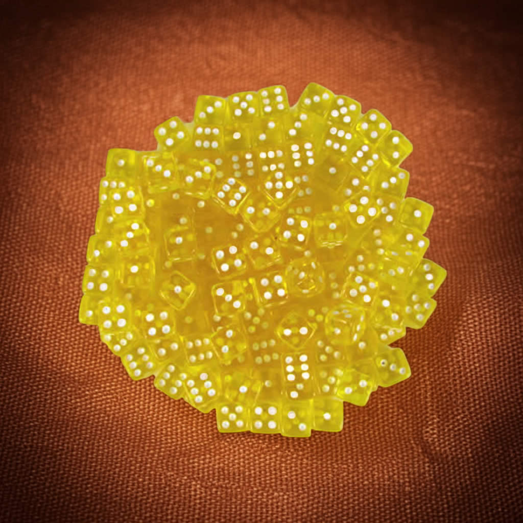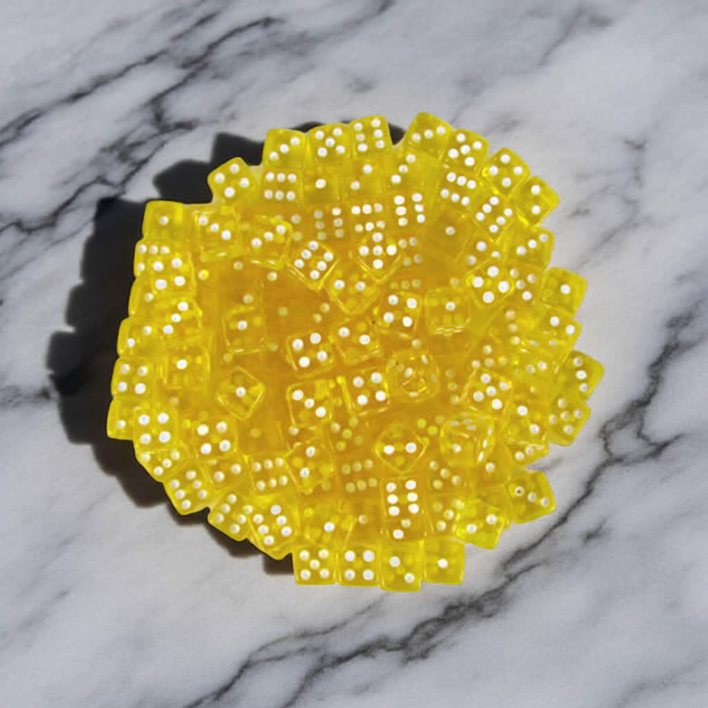 KOP09703 Yellow Transparent Dice with White Pips D6 5mm (13/64in) Bulk Pack of 250 Dice