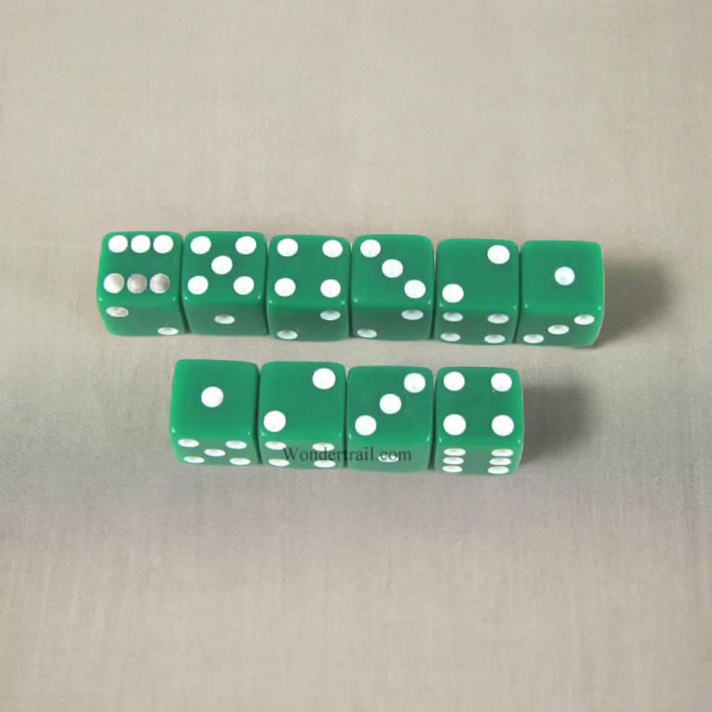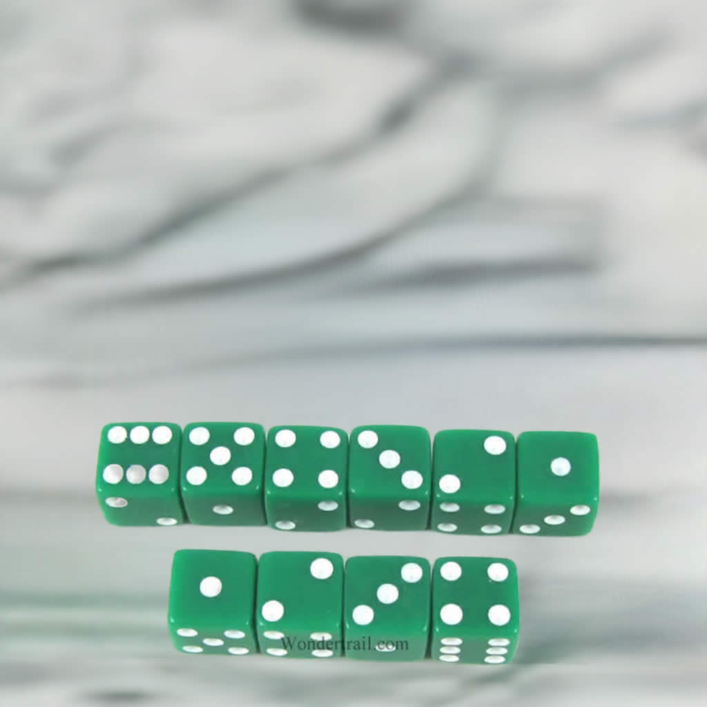 KOP09873 Green Opaque Dice with White Pips D6 8mm (5/16in) Pack of 10 Dice Koplow Games