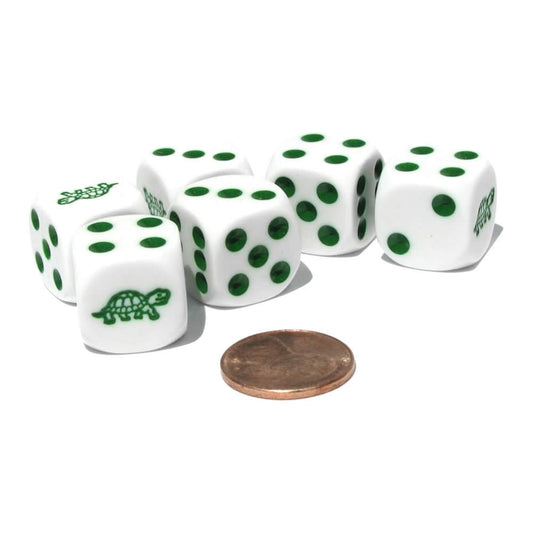 KOP14826 Turtle Dice Game White Opaque Dice with Green Pips D6 16mm (5/8in) Koplow Games