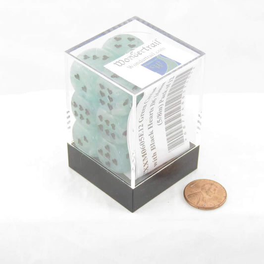 WCXXM0605E12 Green Cirrus Dice with Black Hearts D6 16mm (5/8in) Pack of 12
