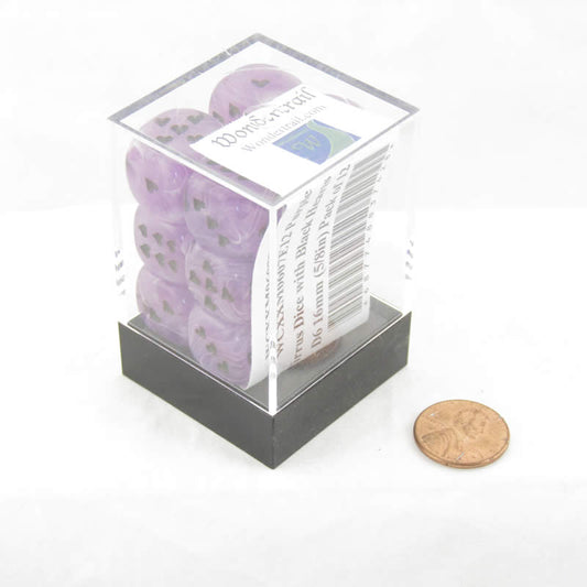 WCXXM0607E12 Purple Cirrus Dice with Black Hearts D6 16mm (5/8in) Pack of 12