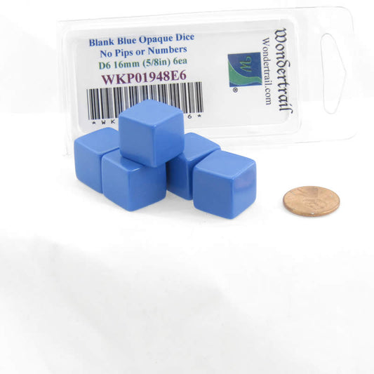 WKP01948E6 Blue Blank Dice Cubes D6 16mm (5/8in) Set of 6 Wondertrail