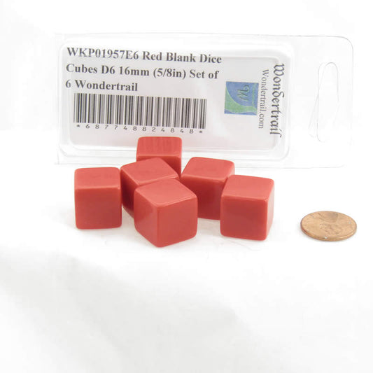 WKP01957E6 Red Blank Dice Cubes D6 16mm (5/8in) Set of 6