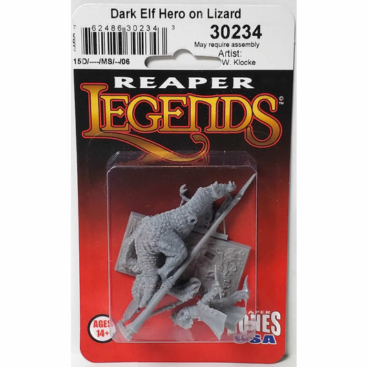 RPR30234 Dark Elf Hero on Lizard Miniature Figure 25mm Heroic Scale Reaper Bones USA