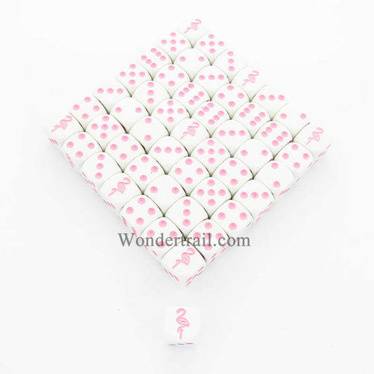 KOP04934 Flamingo Dice Opaque White with Pink Pips 16mm (5/8in) Bulk Pack of 50 Dice