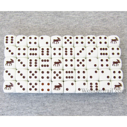 KOP04947 Moose Dice Opaque White with Brown Pips 16mm (5/8in) Bulk Pack of 50 Dice