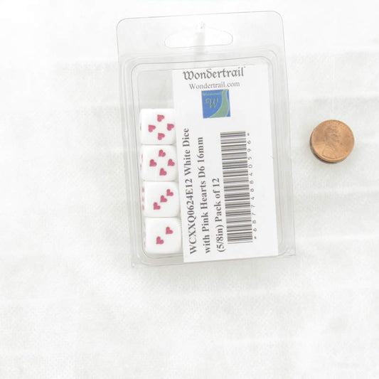 WCXXQ0624E12 White Dice with Pink Hearts D6 16mm (5/8in) Pack of 12