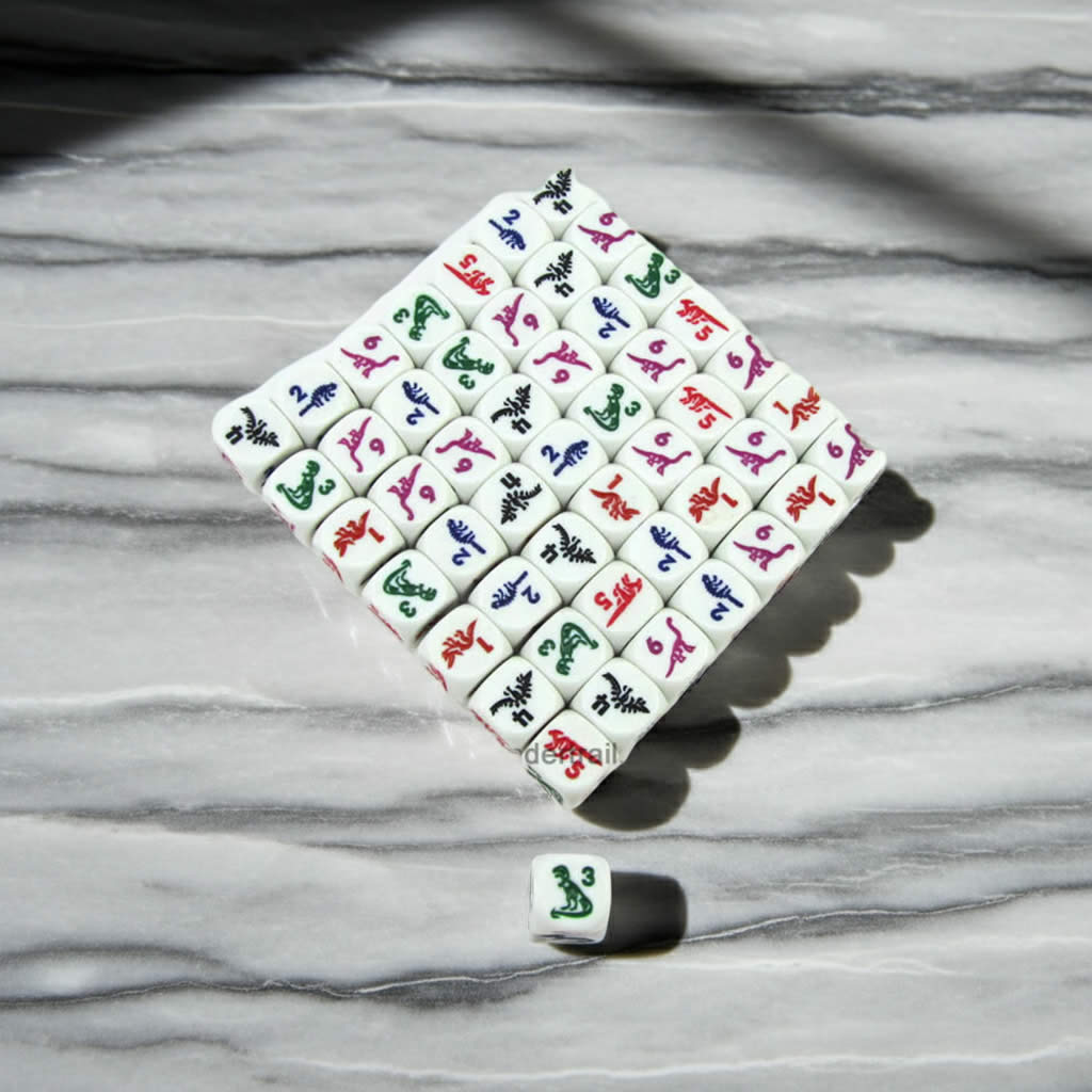 - Dice are white opaque in color with different color 1 - 6 and different dinosaurs on each side.