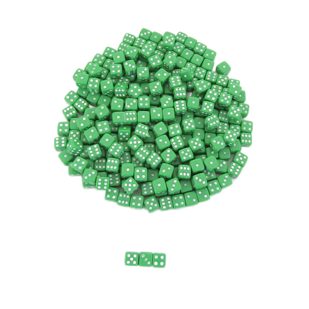 KOP00642 Green Opaque Tiny Dice with White Pips D6 5mm (13/64in) Pack of 250 Dice