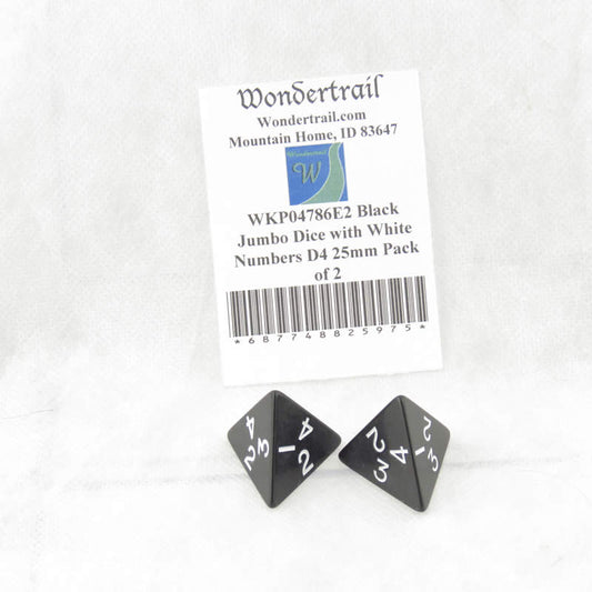 WKP04786E2 Black Jumbo Dice with White Numbers D4 25mm Pack of 2