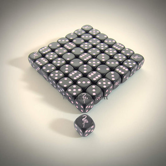 KOP04926 Flamingo Dice Opaque Black with Pink Pips 16mm (5/8in) Bulk Pack of 50 Dice