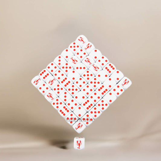 KOP04941 Lobster Dice Opaque White Red Pips 16mm Bulk Pack of 50