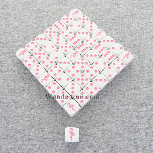 KOP04934 Flamingo Dice Opaque White with Pink Pips 16mm (5/8in) Bulk Pack of 50 Koplow Games