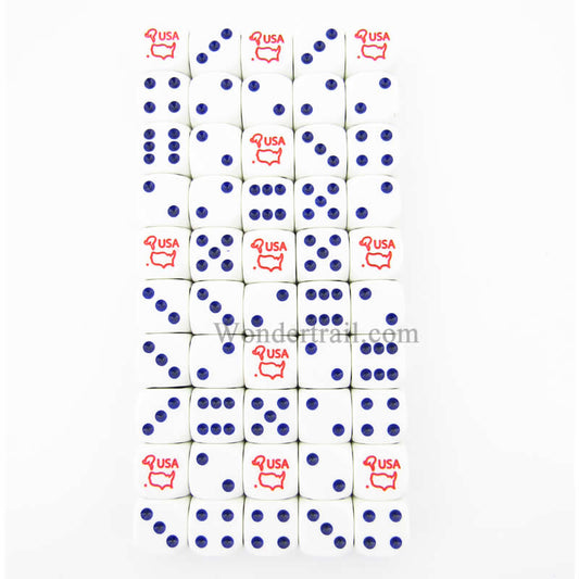 KOP07219 USA Dice White with Blue Pips and Red USA D6 16mm Bulk Pack of 50
