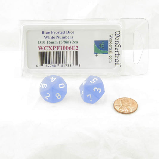 WCXPF1006E2 Blue Frosted Dice White Numbers D10 16mm Pack of 2