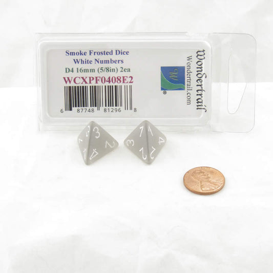 WCXPF0408E2 Smoke Frosted Dice White Numbers D4 16mm Pack of 2