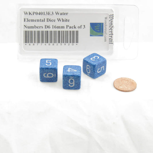 WKP04013E3 Water Elemental Dice White Numbers D6 16mm Pack of 3