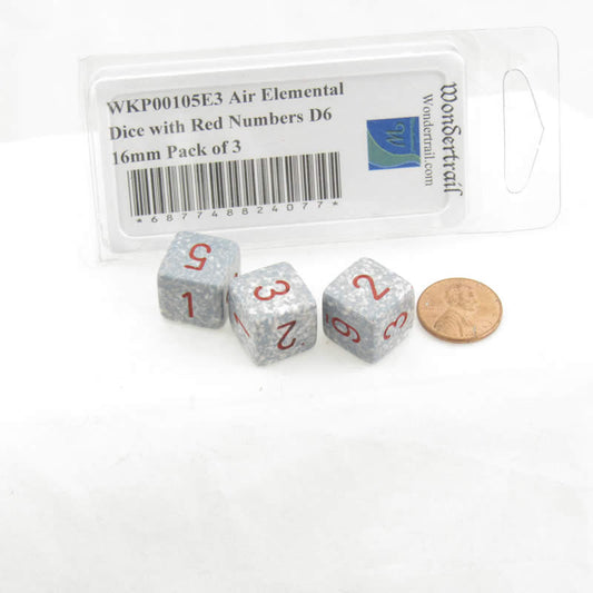 WKP00105E3 Air Elemental Dice with Red Numbers D6 16mm Pack of 3