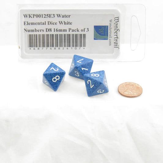 WKP00125E3 Water Elemental Dice White Numbers D8 16mm Pack of 3