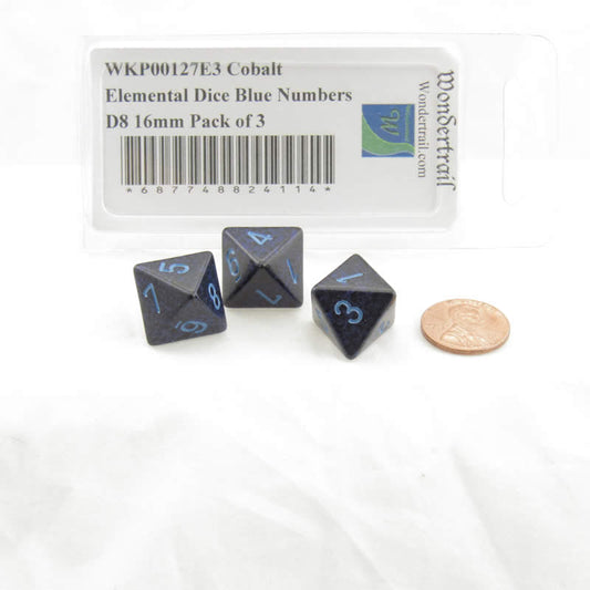 WKP00127E3 Cobalt Elemental Dice Blue Numbers D8 16mm Pack of 3