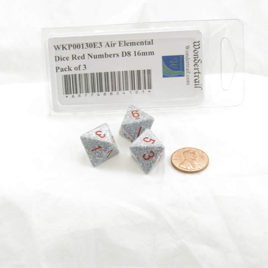 WKP00130E3 Air Elemental Dice Red Numbers D8 16mm Pack of 3