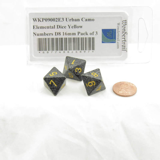 WKP09002E3 Urban Camo Elemental Dice Yellow Numbers D8 16mm Pack of 3