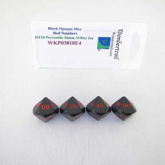 WKP03818E4 Black Opaque Dice Red Numbers DT10 16mm Pack of 4