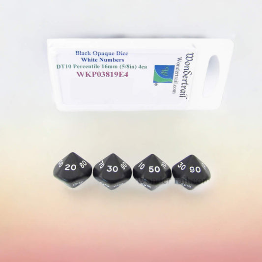 WKP03819E4 Black Opaque Dice White Numbers DT10 16mm Pack of 4