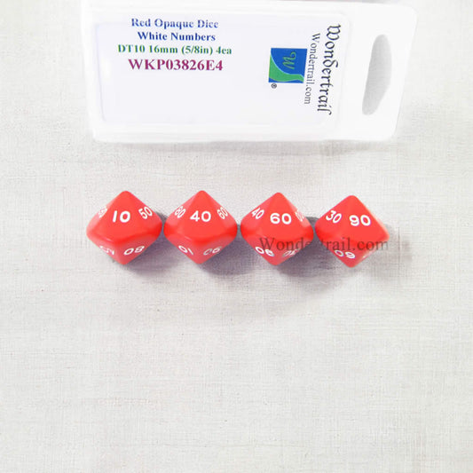 WKP03826E4 Red Opaque Dice White Numbers DT10 16mm Pack of 4