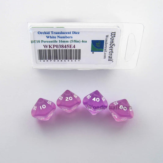 WKP03845E4 Orchid Transparent Dice White Numbers DT10 16mm Pack of 4