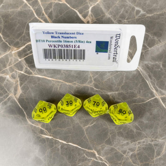 WKP03828E4 Yellow Opaque Dice with Black Numbers DT10 16mm (5/8in) Pack of 4 Dice