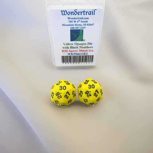WKP06011E2 Yellow Opaque Dice Black Numbers D30 30mm Pack of 2