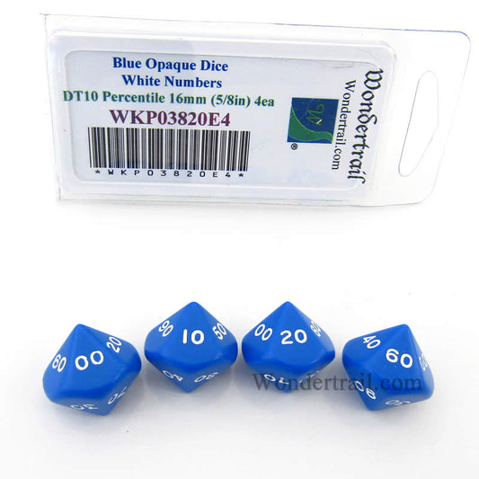 WKP03820E4 Blue Opaque Dice White Numbers DT10 16mm Pack of 4