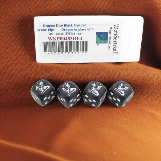 WKP00483DE4 Dragon Dice Black Opaque with White Pips D6 16mm (5/8in) Set of 4 Dice