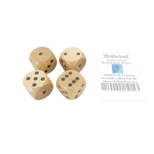 WKP02173E4 Natural Wood Dice with Black Pips D6 30mm (1.18in) Pack of 4 Dice