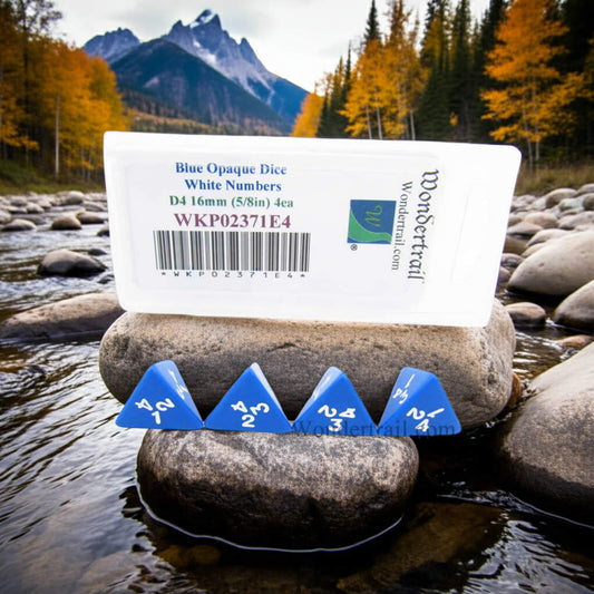 WKP02371E4 Blue Opaque Dice with White Numbers D4 16mm (5/8in) Pack of 4 Dice