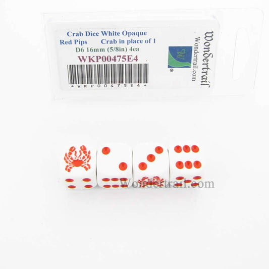 WKP00475E4 Crab Dice D6 White Opaque Red Pips 16mm Set of 4