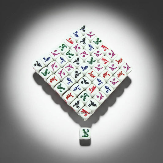 KOP00480 Dinosaur Dice D6 White Opaque with Multi-Color Dinosaurs 16mm (5/8in) Set of 50 Dice
