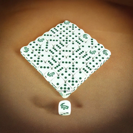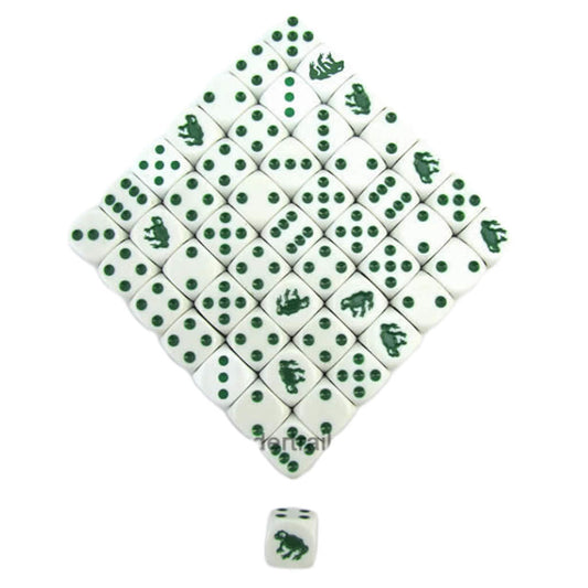 KOP15534 Alligator Dice White Opaque with Green Pips D6 16mm (5/8in) Bulk Pack of 50 Koplow Games