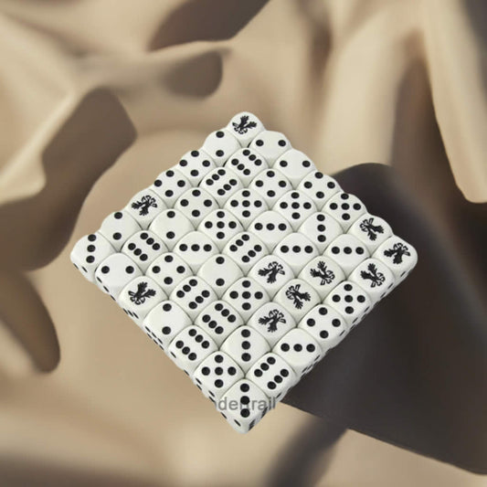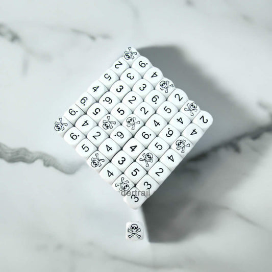 KOP05694 Skull Dice White Opaque Black Standard Numbers 16mm Bulk Pack of 50