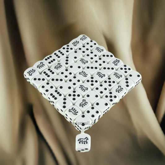 KOP15519 Black Horse Dice White Opaque with Black Pips D6 16mm (5/8in) Bulk Pack of 50 Dice