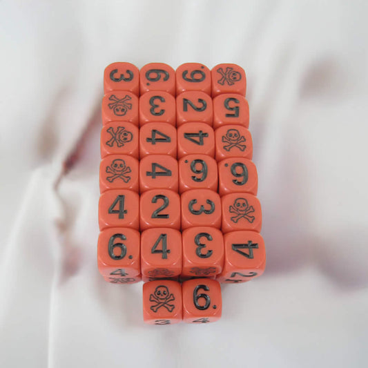 KOP18277E50 Skull and Cross Bones Dice Red Black Large Numbers D6 15.8mm Pack of 50